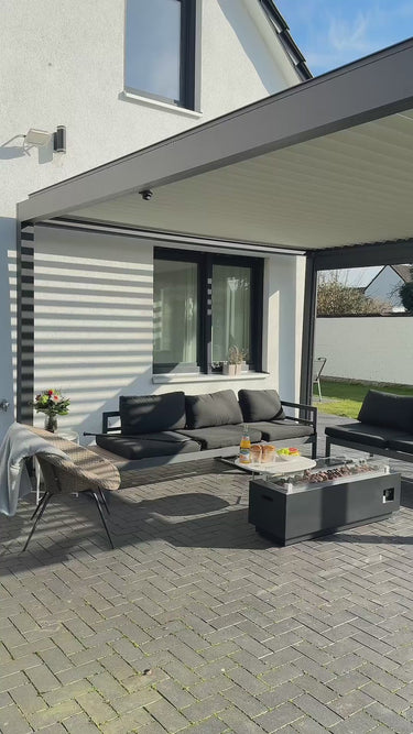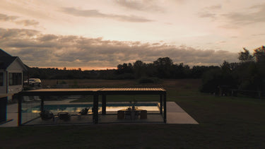 Yes, our pergolas are designed to be watertight, featuring an integrated drainage system. This includes a built-in gutter and sloped louvers that efficiently channel rainwater down the two front columns, keeping your space dry and comfortable.