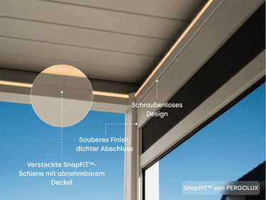 Turn your pergola into your very own retreat – with more comfort, protection, and atmosphere. In every season, at any time. Thanks to our unique SnapFIT™ system, it only takes a few minutes.